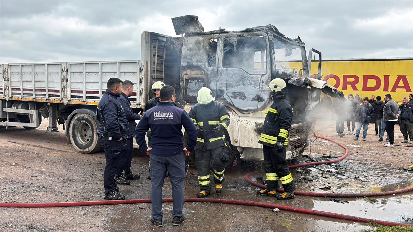 Yangında TIR kullanılamaz hale gelirken, inceleme başlatıldı.