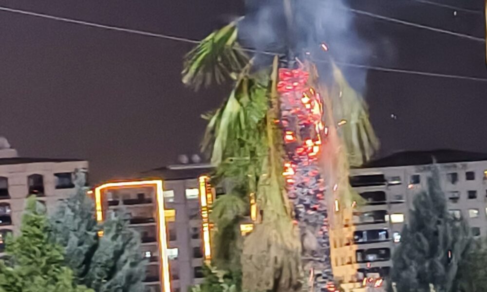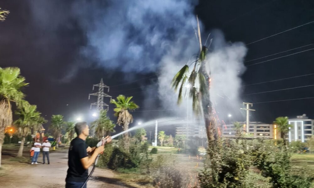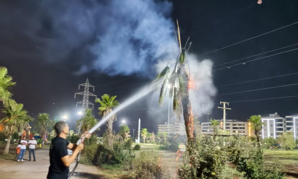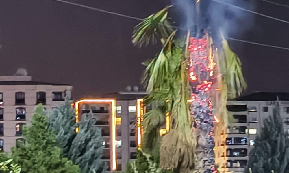 Parktaki palmiye ağacı ateşe verildi