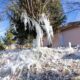 Patlayan borudan suyun sıçradığı ağaçta buz sarkıtları oluştu