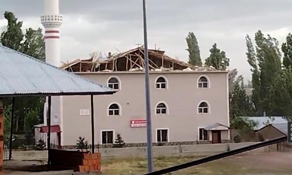 Patnos’ta fırtına caminin çatısını uçurdu; o anlar kamerada