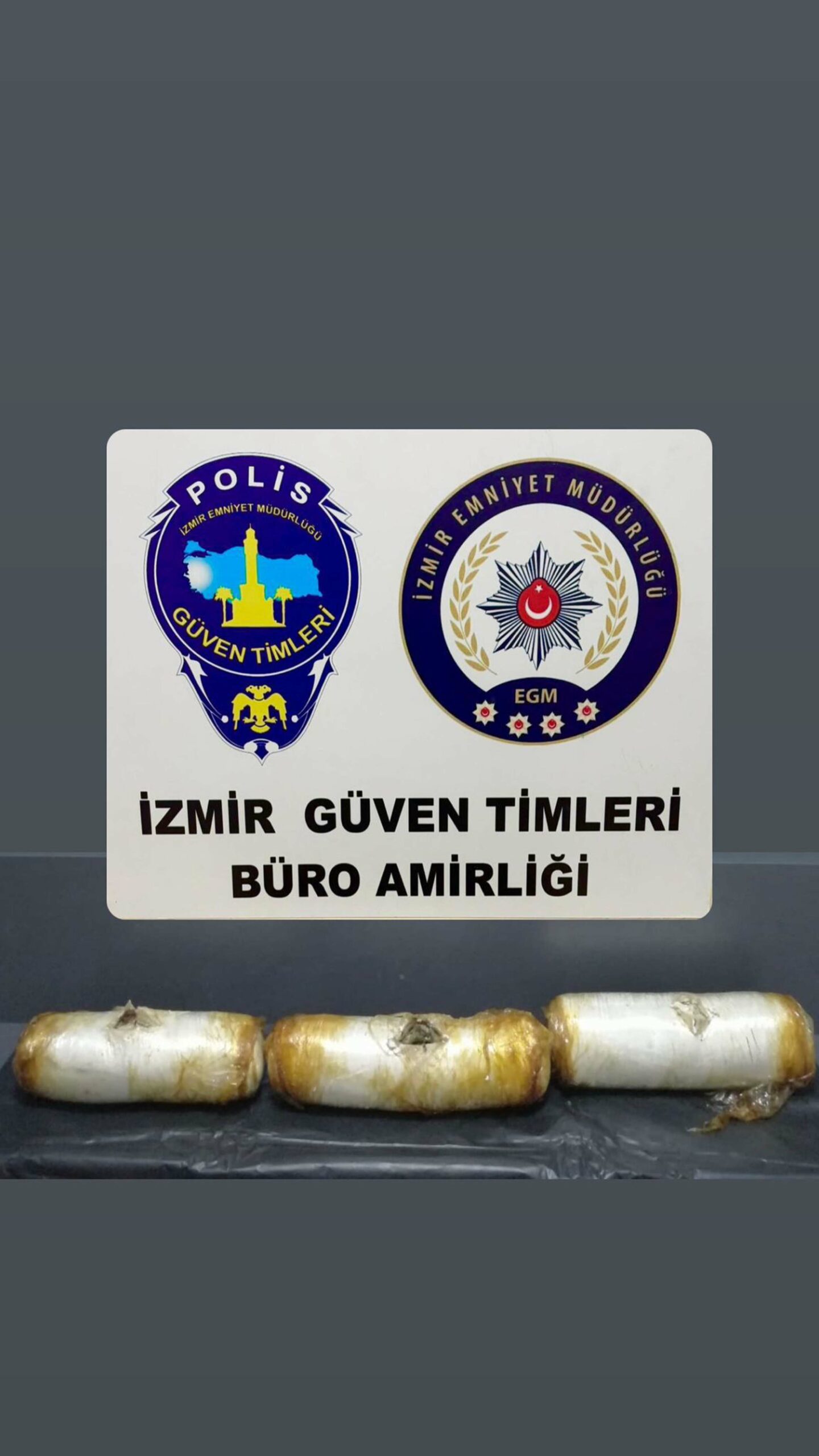 İZMİRin Bornova ilçesinde, polis ekiplerinin otogarda uyuşturucu tacirlerine yönelik operasyonunda, S.D.nin taşıdığı pekmez bidonlarının içerisinde uyuşturucu madde ele geçirildi. Gözaltına alınan S.D. çıkarıldığı hakimlikçe tutuklandı.İzmir İl Emniyet Müdürlüğüne bağlı Asayiş Şube Müdürlüğü Güven Timleri Büro Amirliği ekipleri, 7 Mart tarihinde Bornova ilçesinde bulunan İzmir Şehirlerarası Otobüs Terminalinde doğu illerinden İzmire otobüs ile uyuşturucu sevkiyatı yapıldığı istihbaratı üzerine operasyon düzenledi. Narkotik Şube Müdürlüğü ekiplerinin de katıldığı operasyonda, S.D. isimli şüpheli durdurularak arandı. Yapılan aramada şüpheliye ait pekmez bidonlarının içerisinde streç ile sarılmış 3 parça halinde 3 kilo 800 gram esrar maddesi ele geçirdi. Gözaltına alınan S.D., emniyetteki işlemlerinin ardından sevk edildiği adliyede çıkarıldığı mahkemece tutuklandı.
