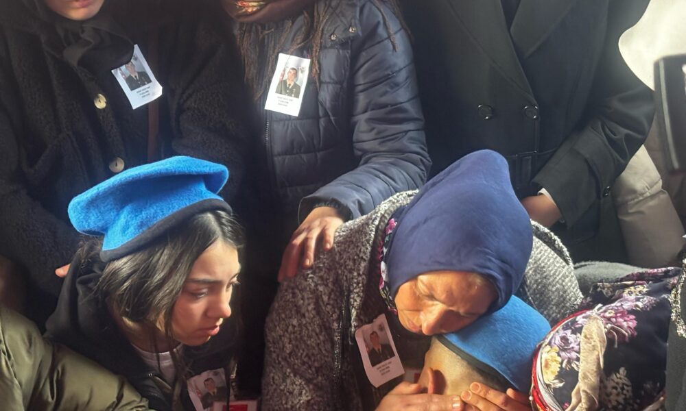 • Şehidin silah arkadaşı (fotoğrafta solda siyah ceketli) şehidin annesi Nebahat Day ( fotoğrafta sağda mavi başörtülü) Fotoğraf: Efnan DEMİREREN/Trabzon,(DHA)