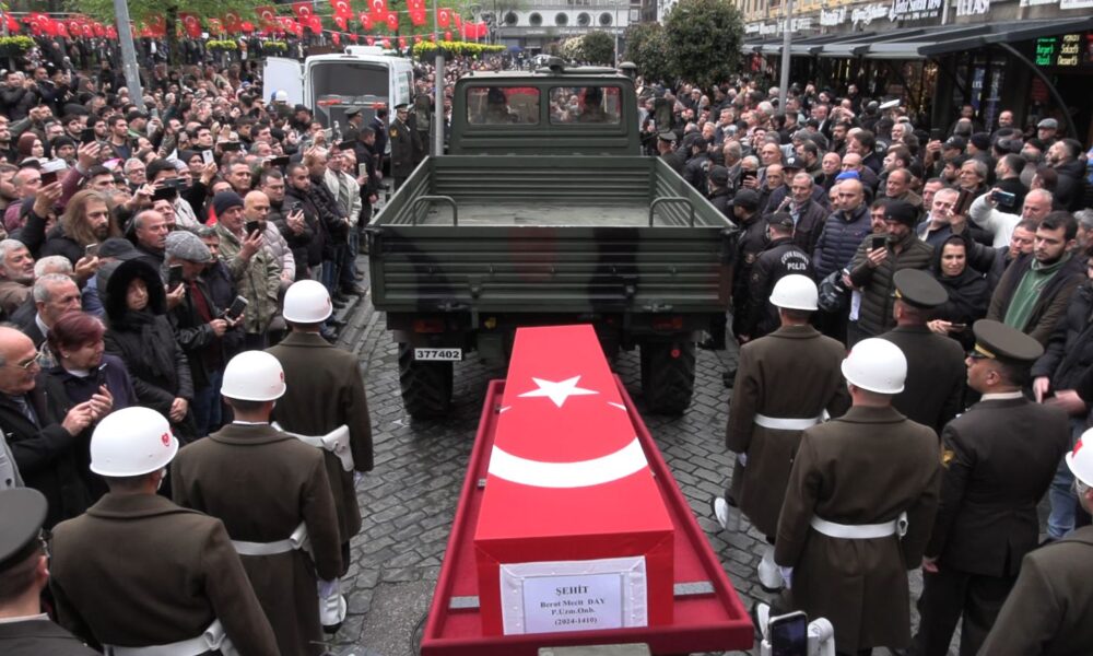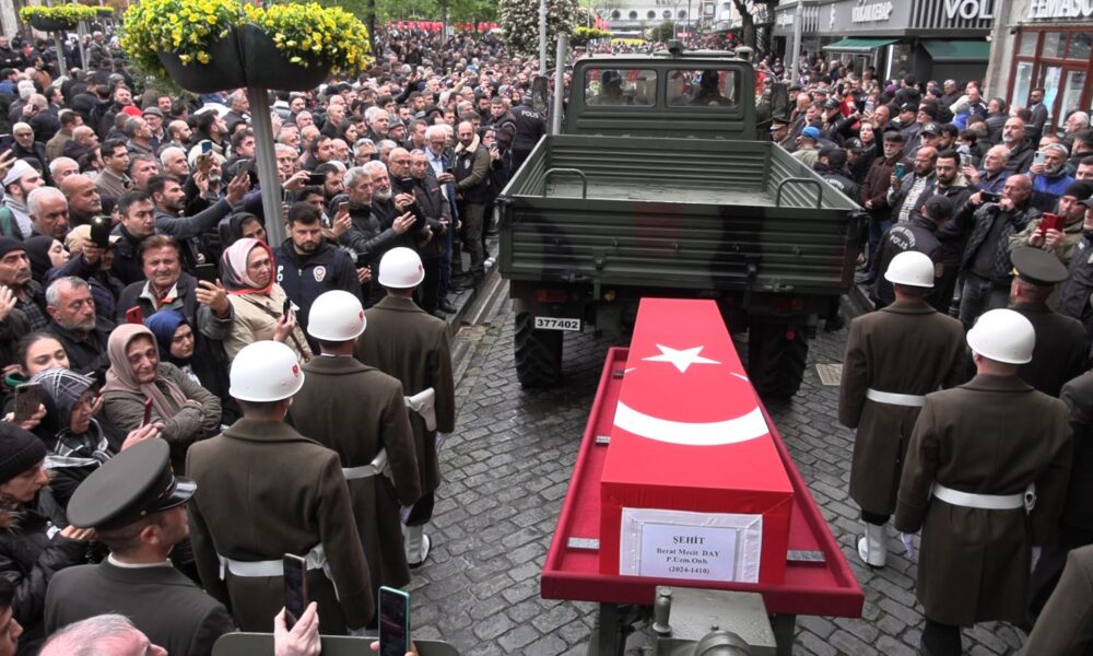 Irak'ın kuzeyinde Pençe-Kilit operasyonu bölgesinde, şehit olan Piyade Uzman Onbaşı Berat Mecit Day’ın (23) Trabzon’da düzenlenen törenle son yolculuğuna uğurlandı. Fotoğraf: Efnan DEMİREREN/Trabzon,(DHA)
