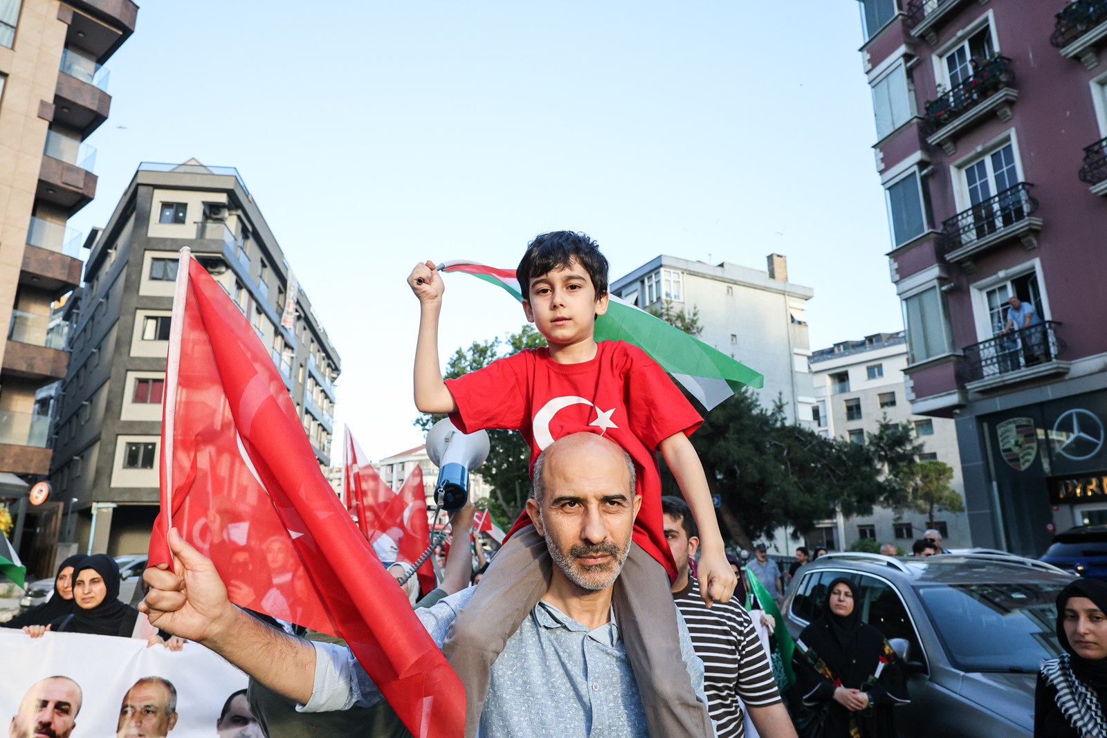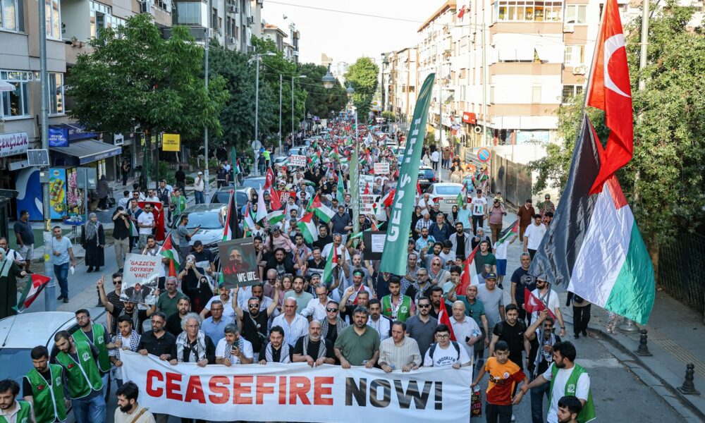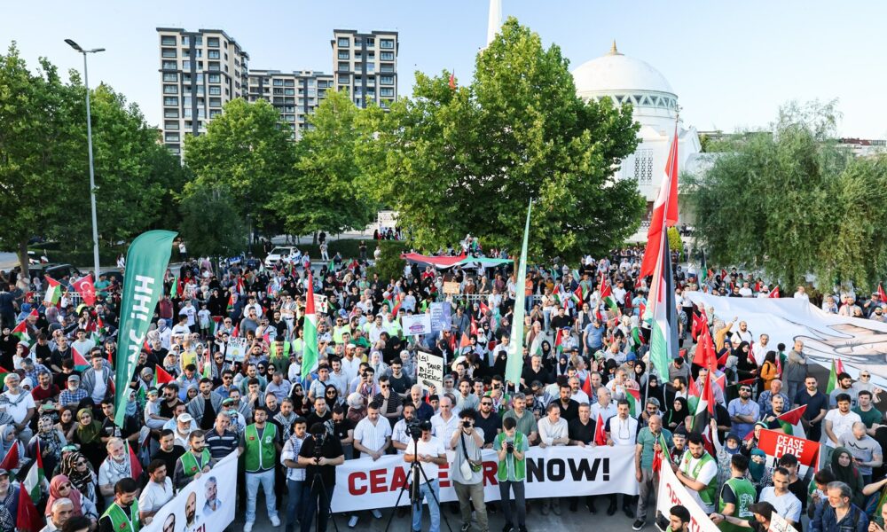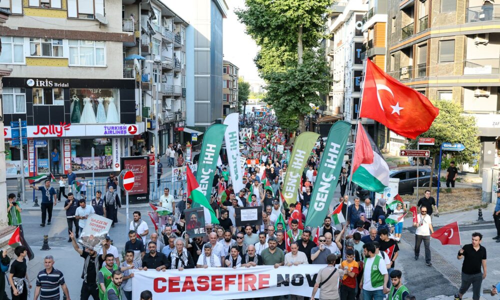 Pendik Marmaray İstasyonu’nda bir araya gelen on binlerce kişi, ellerinde Türk ve Filistin bayrakları ile yürüyüşe geçti. “Katil İsrail Filistin’den defol”, “Katil İsrail, işbirlikçi Amerika”, “Nehirden denize özgür Filistin”, “Filistin halkı yalnız değildir” sloganları atıldı, tekbirler getirildi.