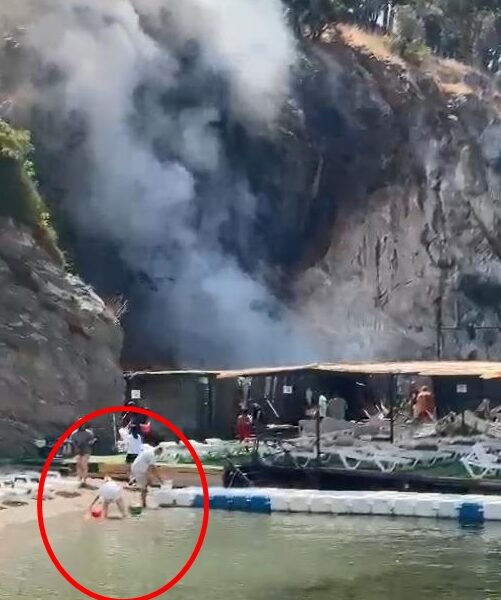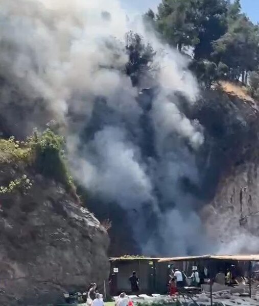 Plajdaki depo yangınına tatilciler de kovayla su dökerek müdahale etti