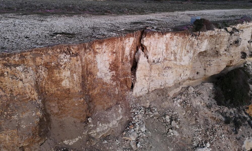 Çanakkalenin Kuzey Ege Denizindeki Bozcaada ilçesi, her yıl çok sayıda yerli ve yabancı turist tarafından ziyaret ediliyor. Polente Burnunda kıyı hattındaki falezlerde son dönemde çatlaklar oluştuğu, bazı bölümlerde kısmi çökmeler ile kaya düşmeleri yaşandığı gözlendi. Yaklaşık 15 metre yüksekliğindeki kıyı uçurumunda meydana gelen çökmeler sonucu kopan kaya parçalarının sahile düştüğü görüldü. Uçurum kenarında oluşan yarık ve kopmalar dikkat çekerken, bölgedeki aşınmanın sürdüğü gözlendi.