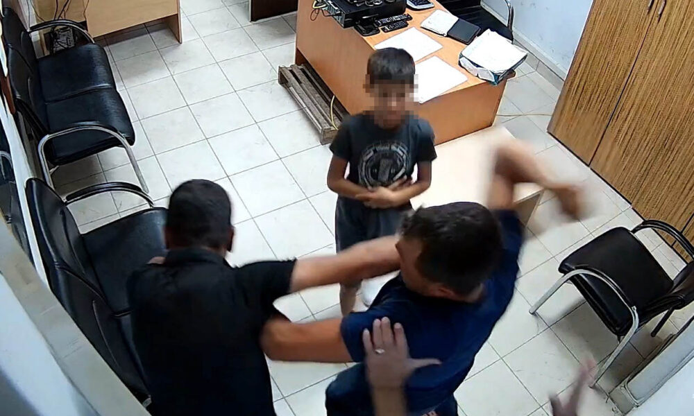 Polis merkezinde ‘kayınbirader dayağı’, o anlar kamerada