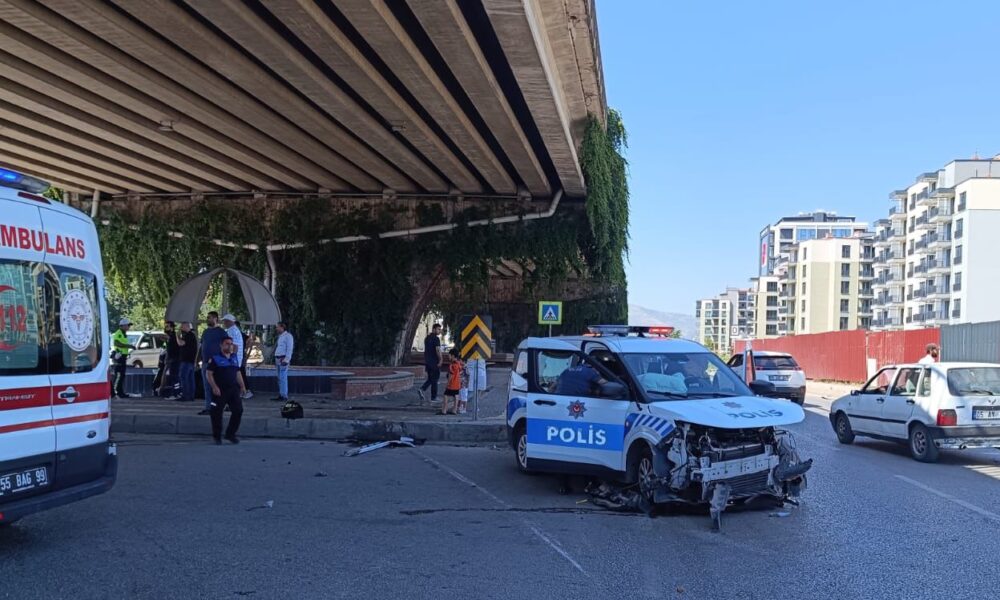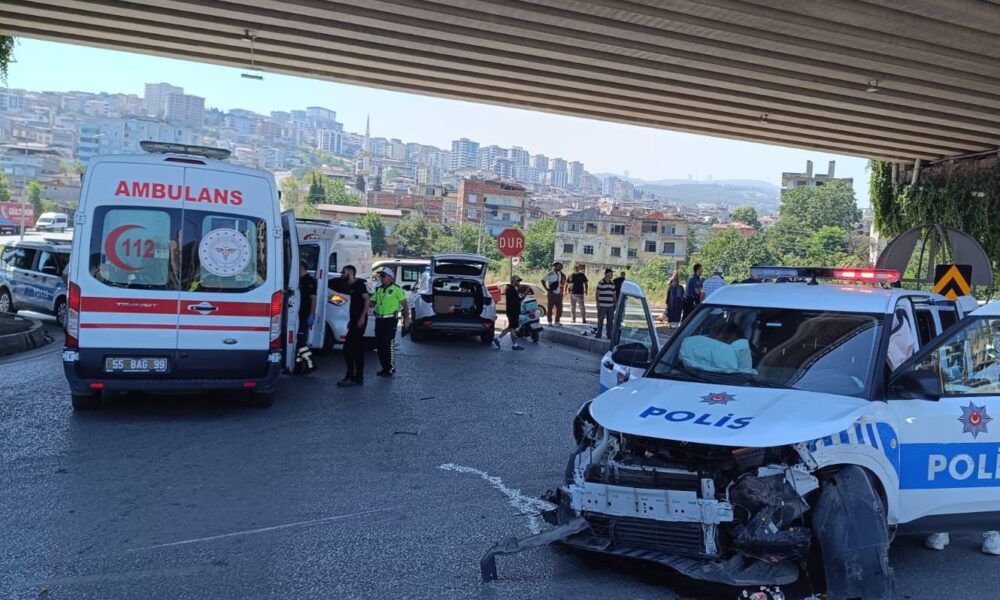 Kaza, sabah saatlerinde Canik ilçesi 100üncü Yıl ile İlkadım bulvarlarının kesişiminde meydana geldi. G.E.nin (39) kontrolündeki İl Emniyet Müdürlüğü Canik İlçe Emniyet Müdürlüğüne bağlı 55 A 7732 plakalı polis otosu ile B.A.nın (34) kullandığı 55 ANH 907 plakalı otomobil kavşakta çarpıştı. Kazada sürücüler ile polis otosundaki İ.K. (52) yaralandı. Çevredekilerin ihbarıyla olay yerine sağlık ekipleri sevk edildi. Yaralılar, sağlık ekiplerince hastaneye götürülüp, tedaviye alındı.