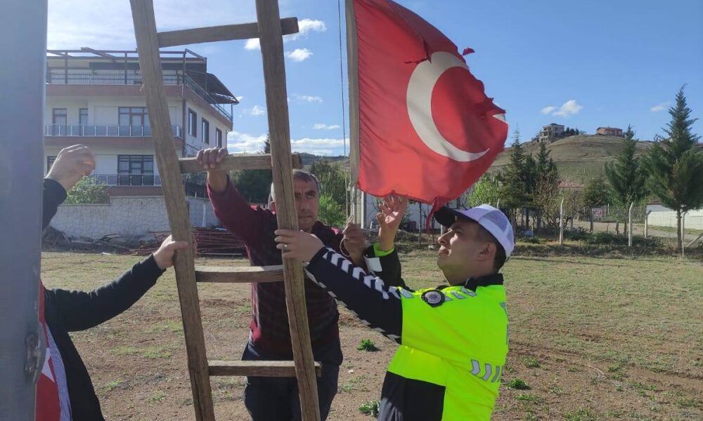 Polis rüzgardan yıpranan Türk bayrağını değiştirdi