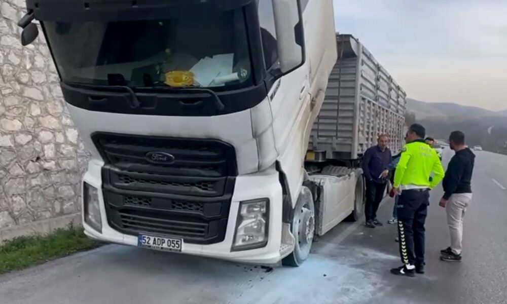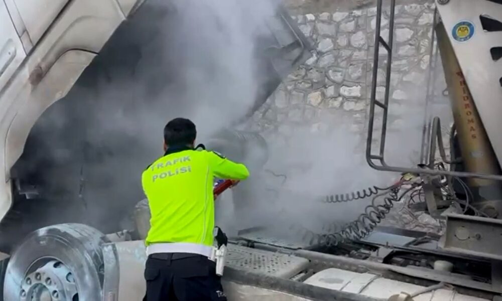 Samsun-Ankara kara yolu Tekkeli mevkisinde, Y.A.nın kontrolündeki 52 ADP 055 plakalı TIRın motor bölümünde, saat 08.00 sıralarında yangın çıktı. Y.A., durumu 112 Acil Çağrı Merkezi’ne bildirdi. Polis ekipleri, itfaiye gelmeden yangın tüpüyle müdahalede bulunup, alevlerin büyümesini önledi. Daha sonra gelen itfaiye ekipleri, alevleri tamamen söndürdü. Polisin, yangının büyümesine engel olduğu anlar, bir kişinin cep telefonu kamerasıyla görüntülendi.