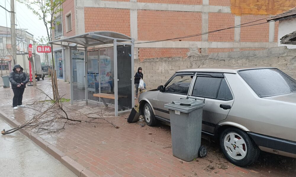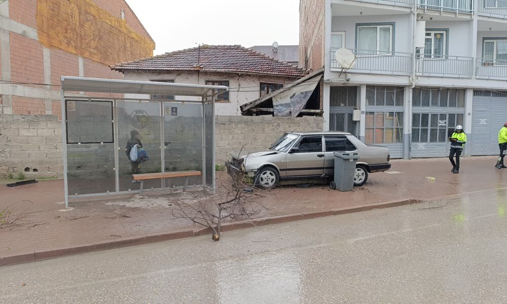 Polisten kaçan ehliyetsiz sürücünün kullandığı otomobil durağa çarptı