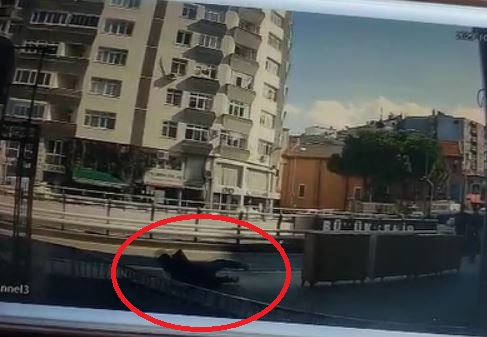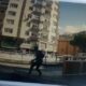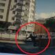 Şüphelinin, ayağının tökezleyip, polise yakalandığı anlar bir iş yerinin güvenlik kamerasıyla kaydedildi.