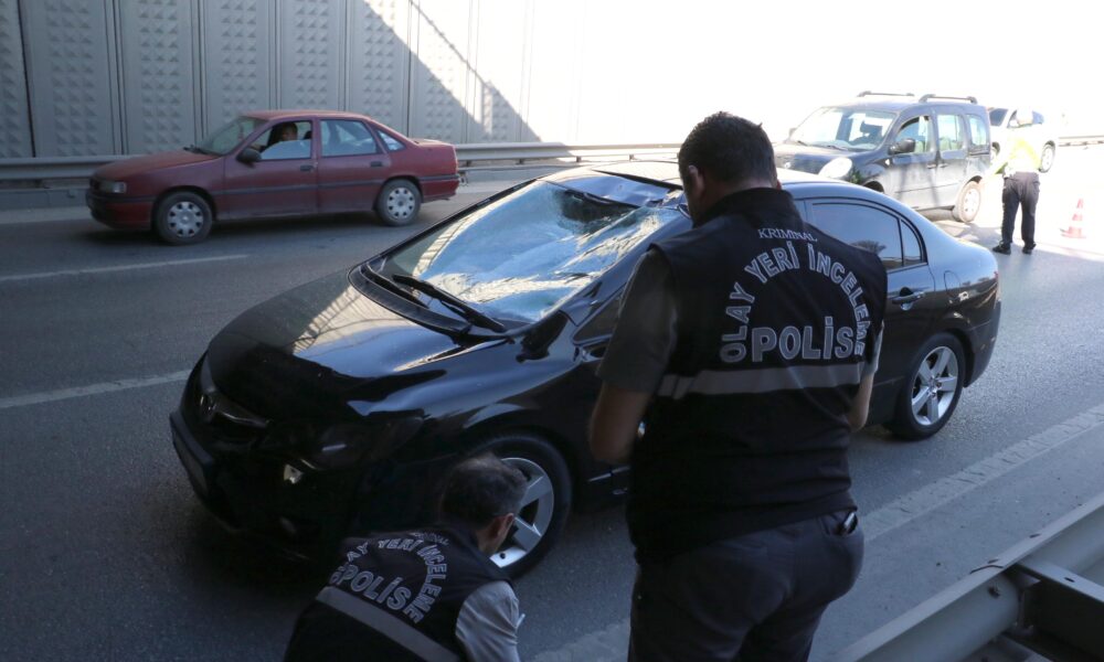 Polisten kaçarken üst geçitten atladı, otomobilin üzerine düştü