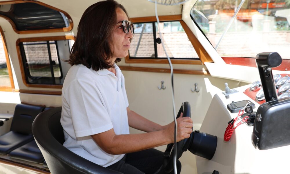 • Eğitimlerin ardından bot kaptanlığına başlayan kadınlardan Ebru Metin (Fotoğrafta). Fotoğraf: Eskişehir,(DHA)