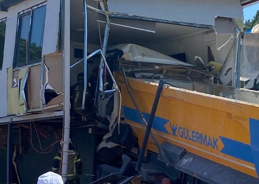 Prefabrik eve çarpan hafriyat kamyonunun şoförü öldü