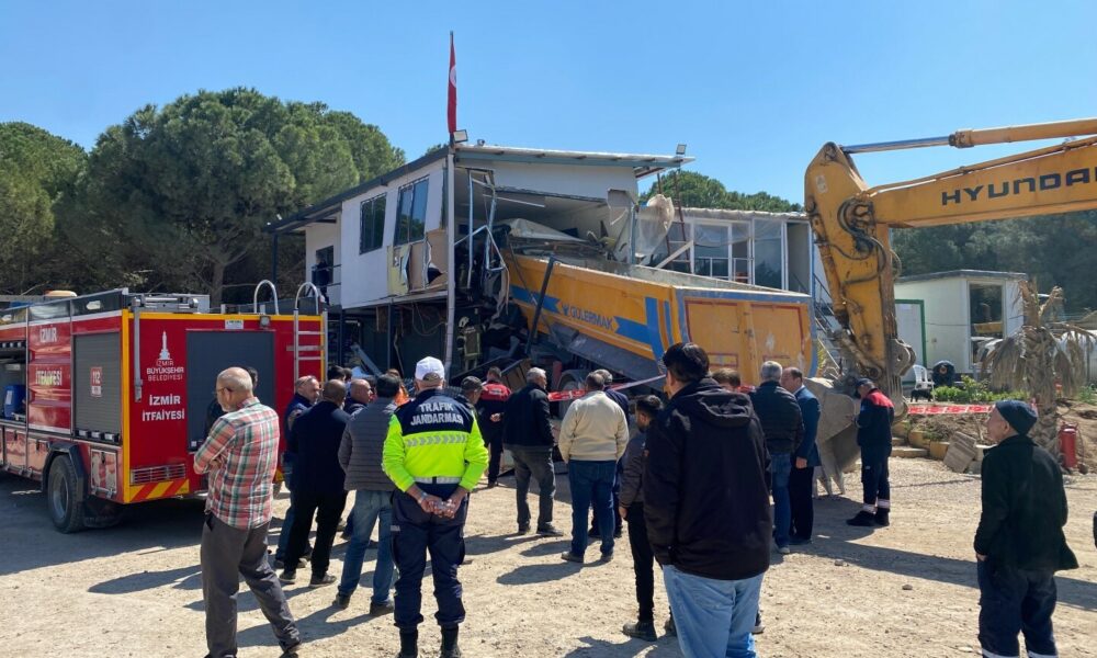 Kaza, saat 11.00 sıralarında, Zafer Mahallesindeki özel hafriyat döküm sahasında meydana geldi. Rıfat Yalçınkayanın kontrolünü yitirdiği 06 EPU 355 plakalı hafriyat kamyonu, döküm sahasında ofis olarak kullanılan prefabrik eve çarptı. Çevredekilerin ihbarı üzerine olay yerine jandarma, sağlık ve itfaiye ekipleri sevk edildi. Araçta sıkışan sürücü Yalçınkaya, itfaiye ekiplerinin çalışmasıyla kısa sürede çıkarıldı. Sağlıkçıların kontrolünde Yalçınkayanın hayatını kaybettiği belirlendi. Savcının incelemesinin ardından Yalçınkayanın cenazesi, İzmir Adli Tıp Kurumuna kaldırıldı.