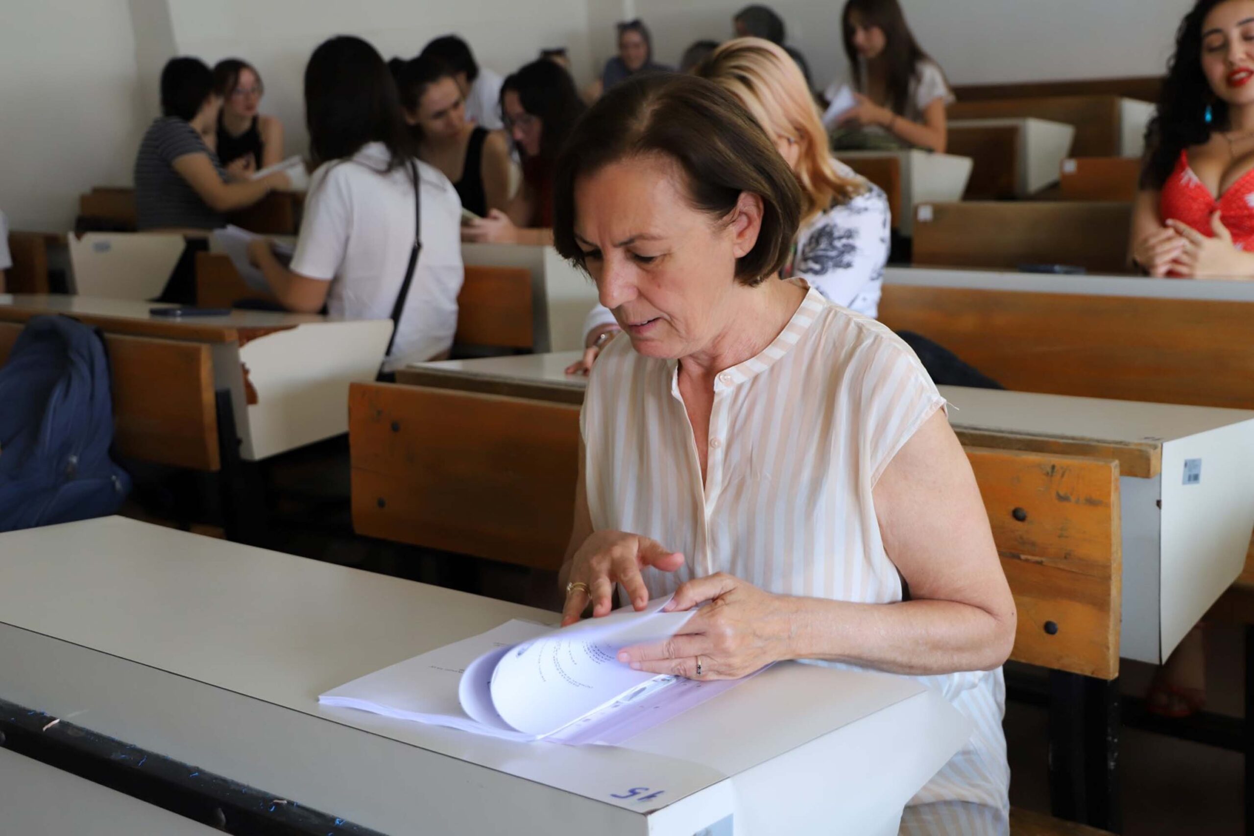 EÜ Eczacılık Fakültesi Farmakoloji Anabilim Dalı'nda 40 yıl öğretim üyeliği yapan Prof. Dr. Zeliha Kerry (önde), 2023 yılında emekli olduktan sonra EÜ Sosyoloji Bölümü'ne öğrenci olarak kaydoldu. Fotoğraf: Seza Nur ALPDÜNDAR/İzmir,(DHA)
