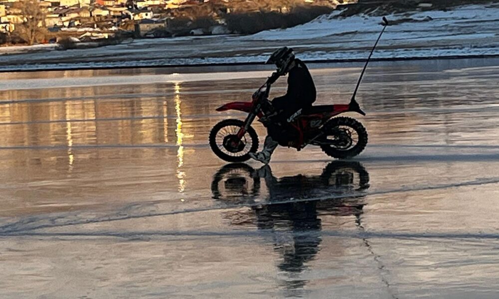 • Profesyonel motosiklet sürücüsü ve snowboard tutkunu Süleyman Atlı, Kars'ın Arpaçay ilçesinde bulunan Çıldır Gölü'nde buz üstünde drift yaptı. Fotoğraf: Suat İNCEDERE/Arpaçay(Kars),(DHA)