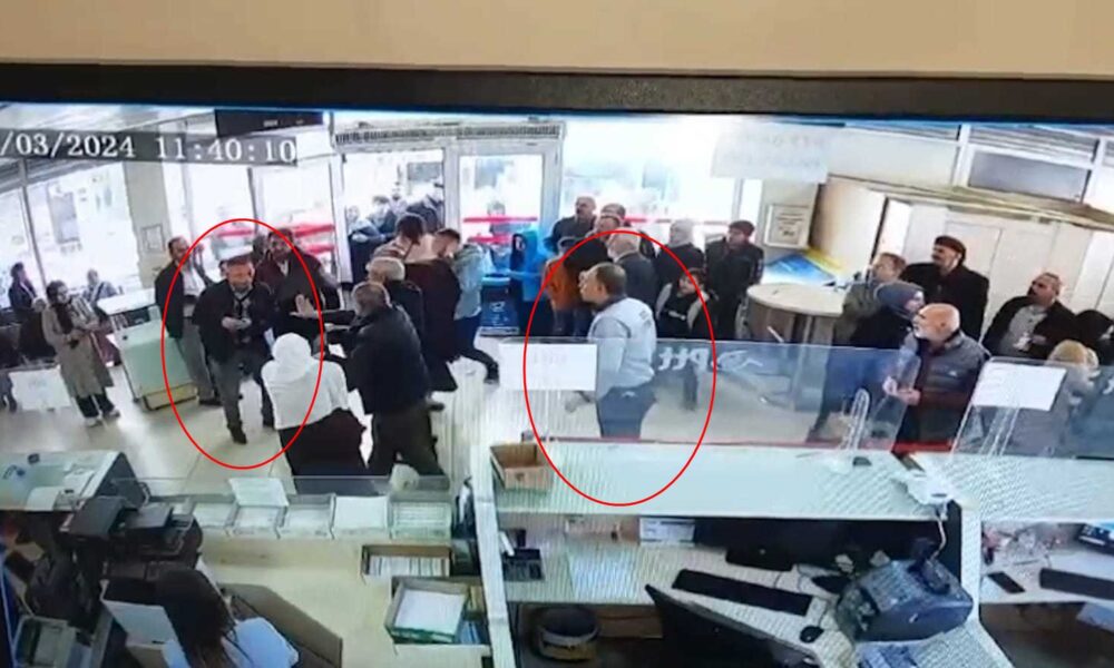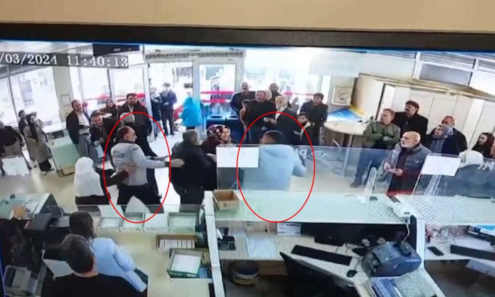 PTT şubesinde güvenlik görevlisinin bıçaklandığı kavga kamerada
