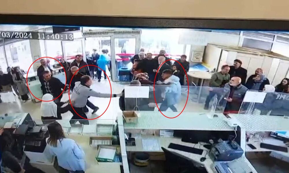 BATMAN’da M.S.Y., oğlu S.Y. ile birlikte geldiği PTT şubesinde, sıra almadan işlem yapmak istediği gerekçesiyle gişe memuruyla tartışıp, olaya müdahale etmek isteyen güvenlik görevlisi Faik Eri bıçakla yaraladı. Olay, güvenlik kamerasına yansıdı.Olay, dün Meydan Mahallesi’ndeki Merkez PTT Müdürlüğü’nde meydana geldi. Oğlu S.Y. ile şubeye gelen M.S.Y., sıra almadan işlem yapmak istediği gerekçesiyle kendisinden sıra numarası almasını isteyen gişe memuruyla tartıştı. Durumu görüp müdahale eden güvenlik görevlisi ile baba ve oğul arasında tartışma çıktı. Tartışmanın kavgaya dönüşmesi üzerine M.S.Y., güvenlik görevlisi Eri sırtından bıçakladı. Olay, şubenin güvenlik kamerasına yansıdı. İhbarla adrese polis ve sağlık ekipleri sevk edildi. Güvenlik görevlisi Faik Er, ilk müdahalesinin ardından kaldırıldığı Batman Eğitim ve Araştırma Hastanesi’ndeki tedavisinin ardından bugün taburcu oldu. Olayın ardından gözaltına alınan baba ve oğlunun emniyetteki işlemleri sürüyor.