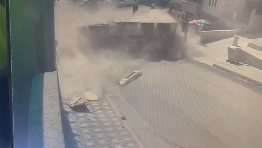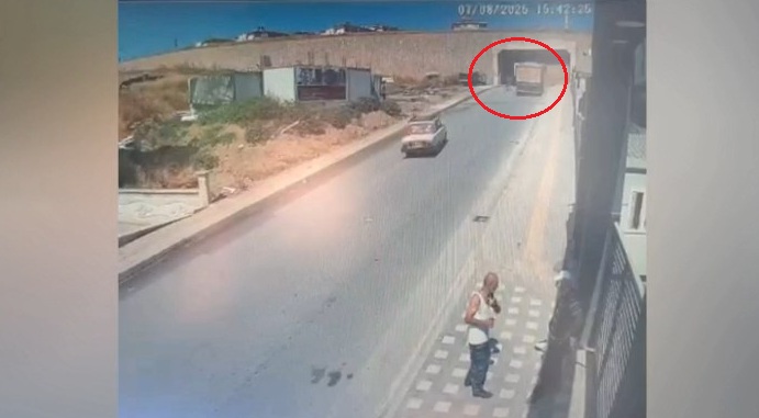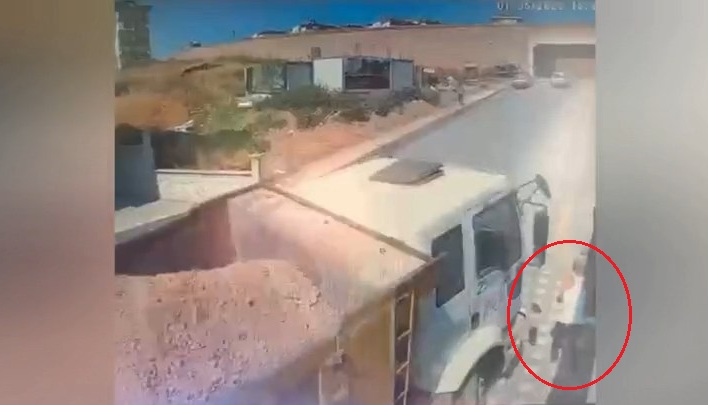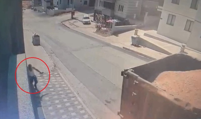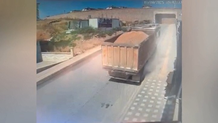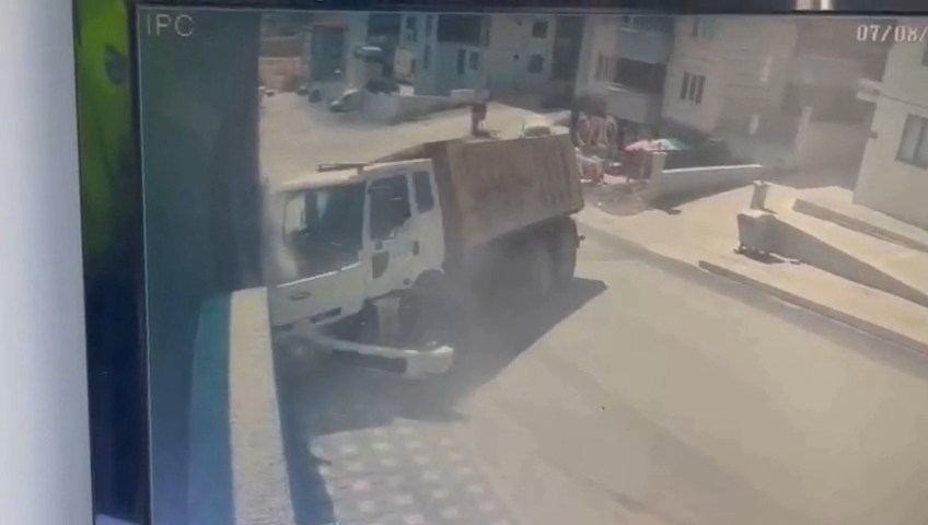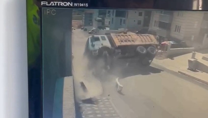 Kaza, saat 16.00 sıralarında Fatih Mahallesi Aşık Veysel Caddesi’nde meydana geldi. Yusuf K. (45) yönetimindeki 49 DC 275 plakalı kum yüklü kamyon yokuşu çıkarken geri kaydı. Geriye doğru hızla ilerleyen kamyonun şoförü Yusuf K. araçtan atladı. Kamyon, bir sitenin duvarına çarparak devrildi. Kaza güvenlik kamerasına yansırken, site önüne kaldırımda duran bir kişinin, hızla gelen kamyonu görüp kaçarak, altında kalmaktan son anda kurtulduğu görüldü.