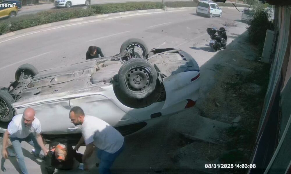 Öte yandan kaza, bir iş yerinin güvenlik kamerasına yansıdı. Görüntülerde, otomobilin refüje çarpıp karşı şeride geçtikten sonra 4 kez takla attığı görüldü.