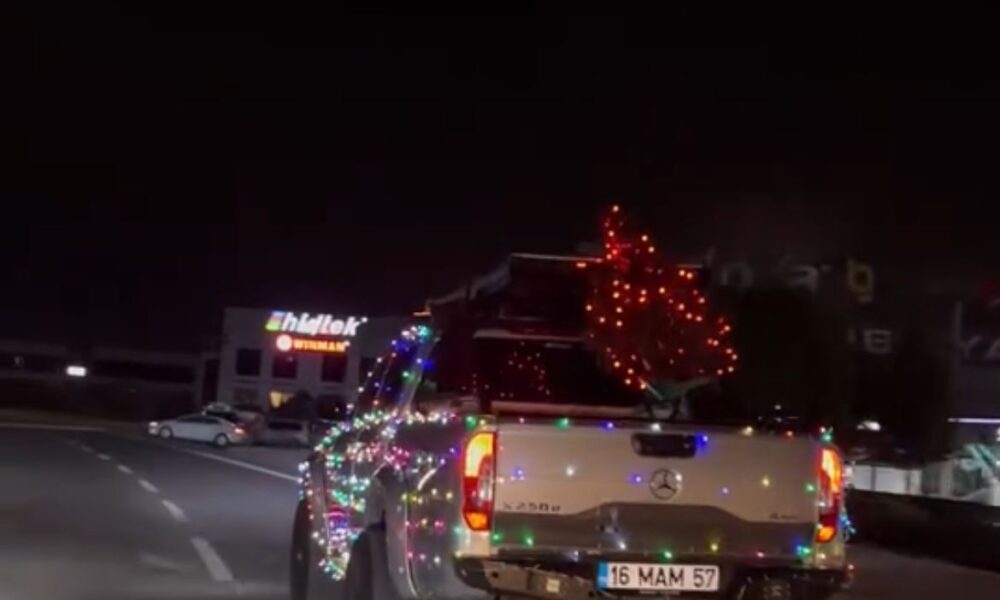 Bursada, bazı sürücüler araçlarını ve motosikletlerini yılbaşı ağacı ile renkli lambalarla süsleyip, sokak ve caddelerde tur attı. Bir sürücü ise rengarenk lambalarla donattığı otomobilini, çekici üzerinde gezdirdi. Renkli araç ve motosikletleri gören vatandaşlar şaşkınlıklarını gizleyemezken, o anlar cep telefonuyla kamerasıyla görüntüledi.