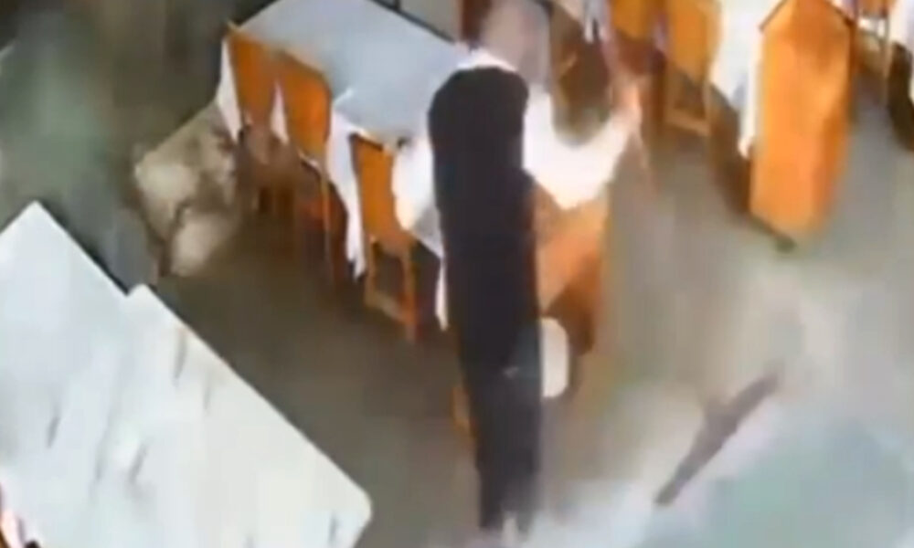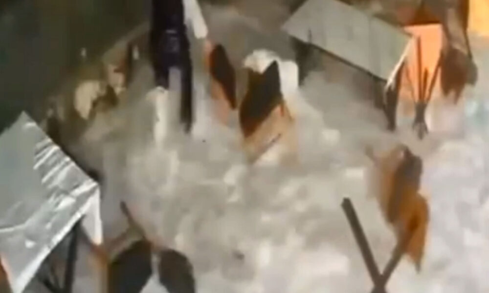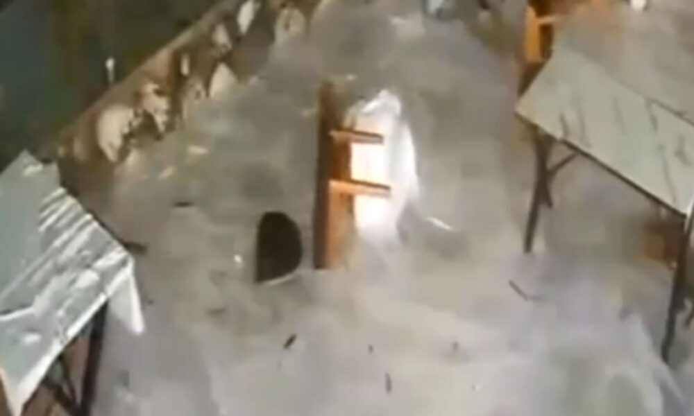 Restorana vuran dev dalganın çalışanı sürüklendiği anlar kamerada