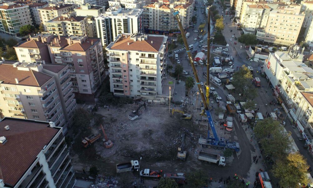 • İzmir depreminde Rıza Bey Apartmanı'nın yıkılmasına ilişkin 20 sanığın yargılandığı davanın 19'uncu duruşmasında; her sanık yönünden sorumluluğun belirlenmesi için yeniden bilirkişi raporu alınmasına karar verildi. Fotoğraf: Arşiv/İzmir,(DHA)