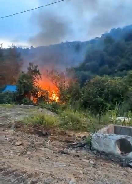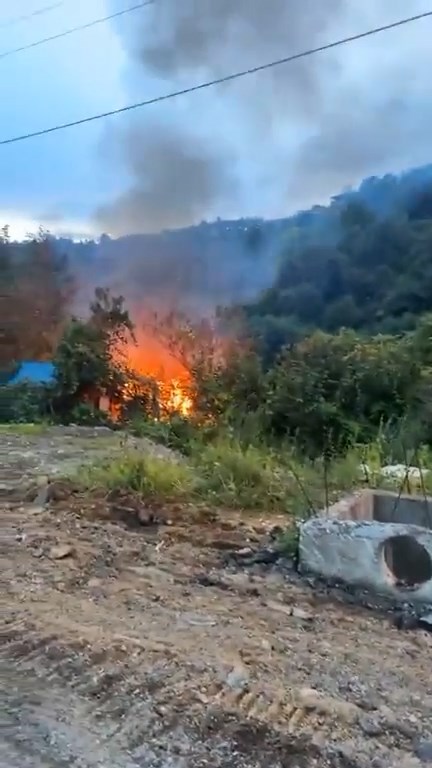Rize’de dere kenarındaki baraka alev alev yandı