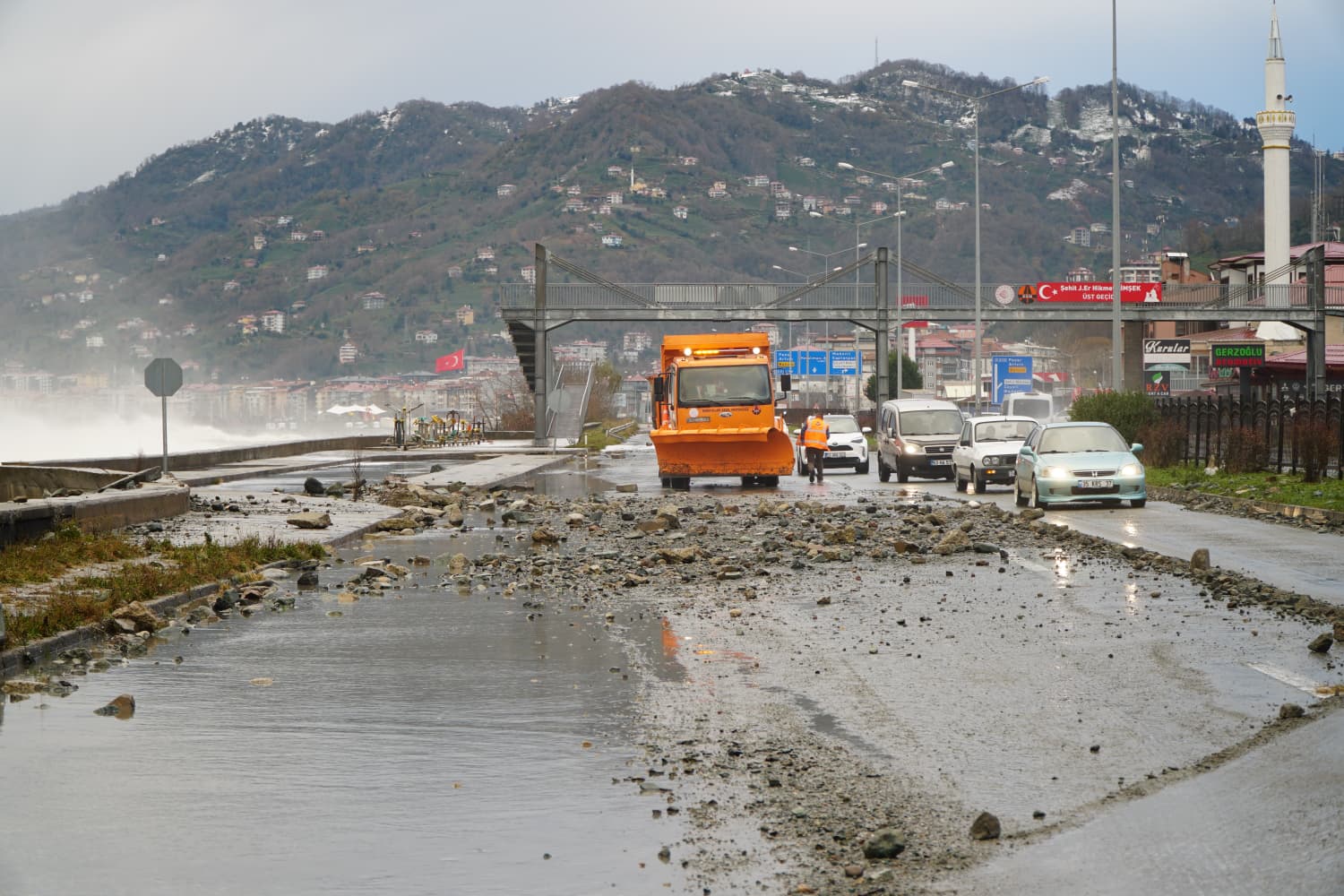 Kentin yüksek kesimlerinde kar, sahil kesimlerinde fırtına etkili oldu. Fırtınayla Karadenizde oluşan ve yer yer 4 metreye ulaşan dalgalar, Çayeli ilçesinde kayalıkları aşıp, sahil yoluna ulaştı. Dalgaların sürüklediği irili ufaklı taşların yola dolmasıyla sürücüler, zor anlar yaşarken, ulaşımda aksama oldu. Karayolları ekipleri, dalgaların şiddetini artırdığı anlarda yolu ulaşıma kapatıp, sürücüleri de uyardı. Ekipler, trafiğin kontrollü sağlandığı bölgede iş makinesi destekli temizlik başlattı.