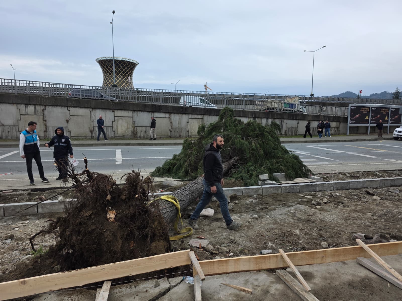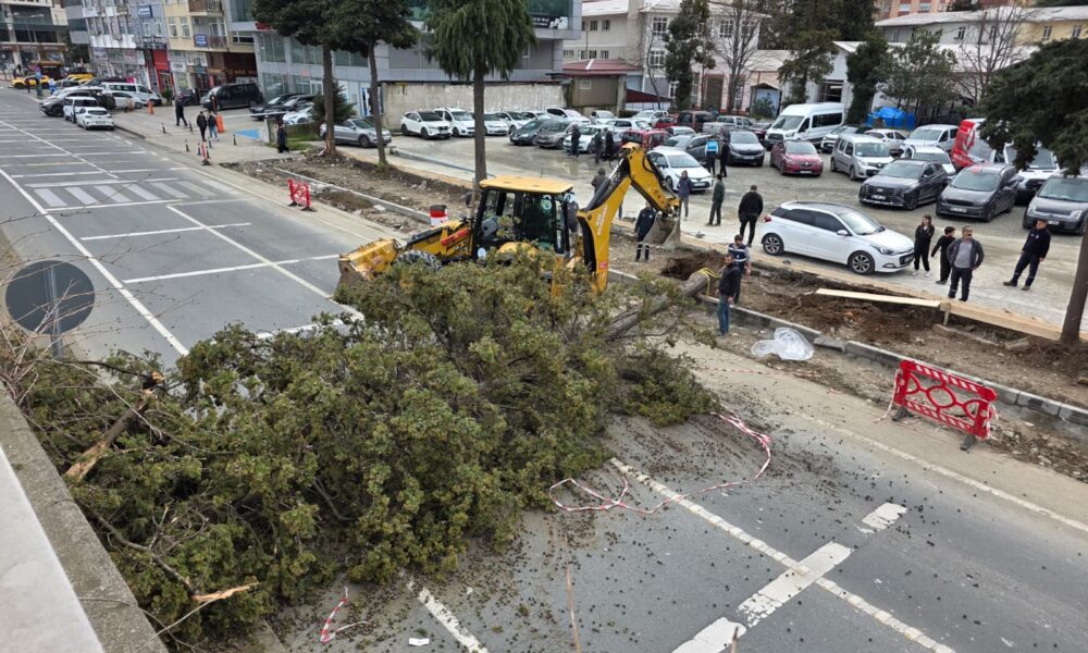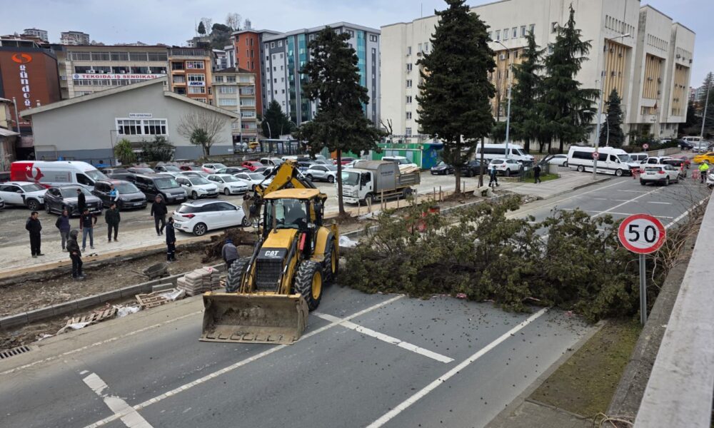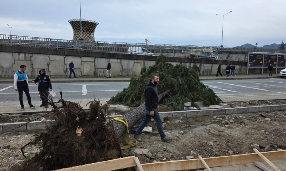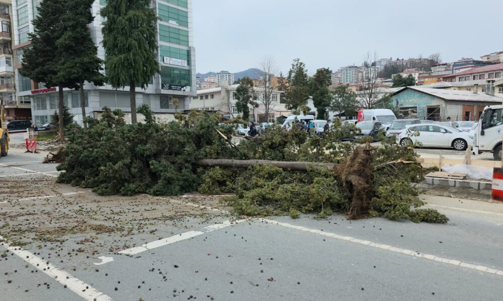 Rize’de fırtına; yol kenarındaki ağaçlar devrildi