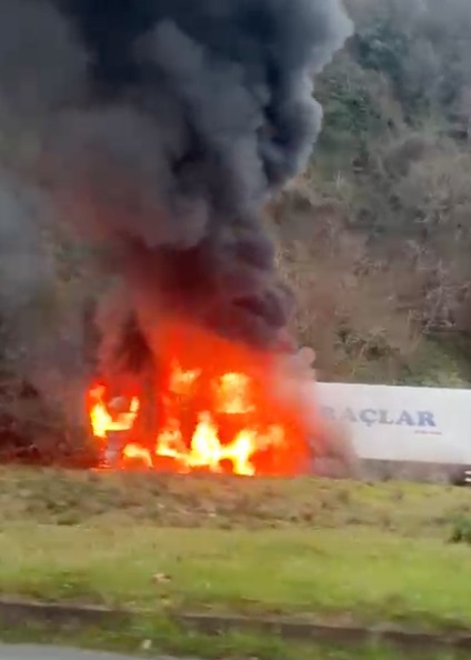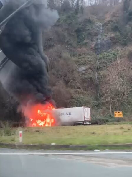 Rize’de Karadeniz Sahil Yolu’nda TIR alev aldı