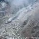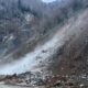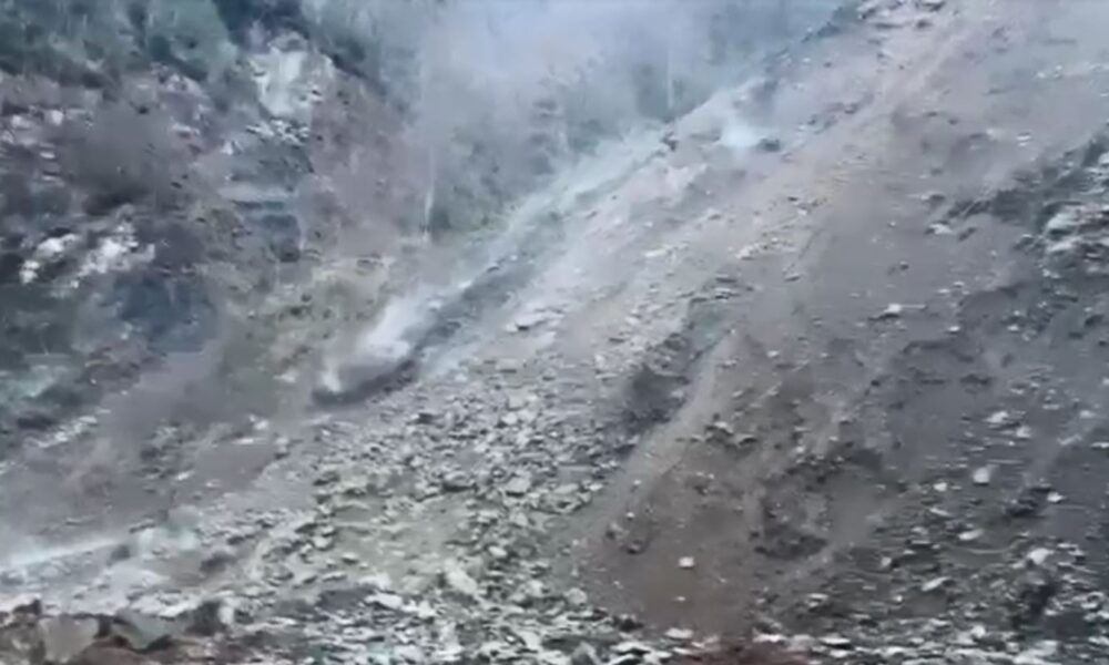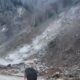 Yol kenarında bulunan elektrik direğinin toprak altında kaldığı heyelan anları çevredekiler tarafından cep telefonu kamerasıyla görüntülendi.