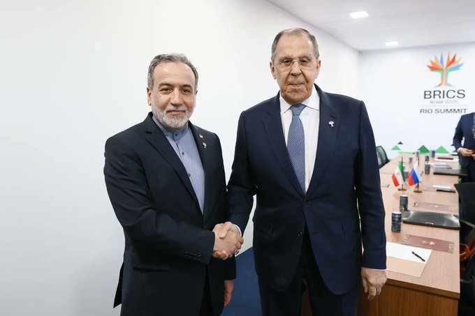 Rusya Dışişleri Bakanlığından yapılan açıklamaya göre, Dışişleri Bakanı Sergey Lavrov ve İranlı mevkidaşı Abbas Arakçi, Brezilyanın ev sahipliğinde Rio de Janeiro kentinde düzenlenen 17’nci BRICS Liderler Zirvesi kapsamında bir araya geldi. Bölgesel ve uluslararası konuların ele alındığı görüşmede, Lavrov, İsrail ve ABDnin Birleşmiş Milletler (BM) Şartını ihlal ederek İran topraklarına ve Uluslararası Atom Enerjisi Ajansı’nın (IAEA) denetimdeki nükleer enerji altyapı tesislerine yönelik saldırılarını kınadı.