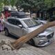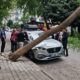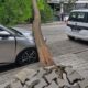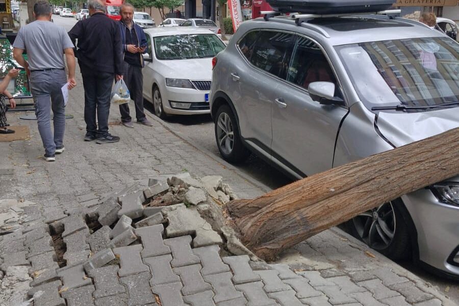 Rüzgarın devirdiği ağaç, otomobilin üzerine düştü