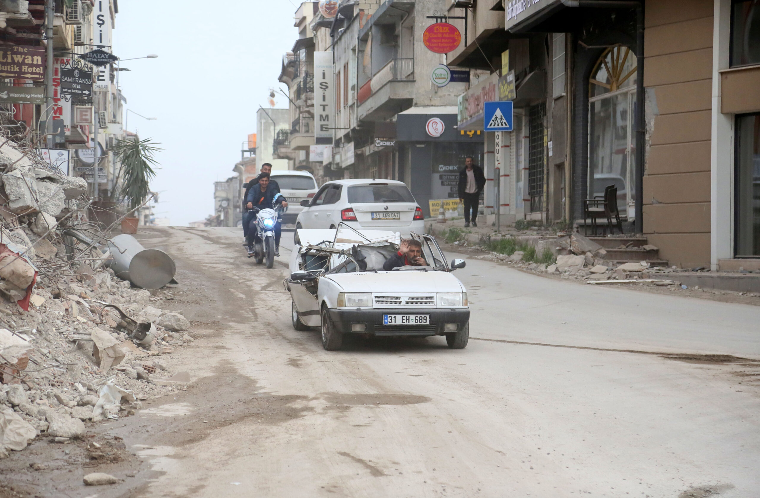 Trafikte ilerlediği sırada görüntülenen otomobilin sahibi Bostan Türkmen, Yayladağı ilçesinde oturduğunu ve evinin tamamen yıkıldığını söyledi. Türkmen, “Enkazdan çıkartılan aracımı trafik ekipleri, köy garajına götürmüş. Ben de gidip, aracımı aldım. Şimdi de evime doğru gidiyorum. Yayladağı tarafında köyde oturuyorum. Motor kısmında bir şey yok ama geri kısmında büyük hasar var; üzeri neredeyse tamamen yok olmuş. En azından köye kadar böyle gideriz. Allah’a şükür can kaybımız yok ama evimiz, eşyalar hepsi gitti. Bunu da bir hatıra olarak bu şekilde köye götürüyorum. Bu araç, hatıra kalacak” dedi.