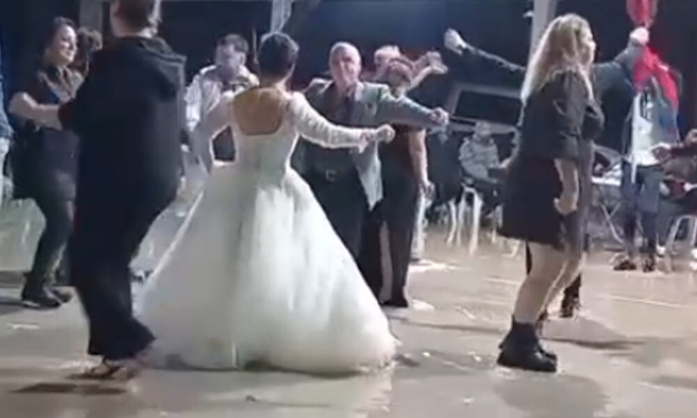 Sağanakla düğün pisti suyla doldu, davetliler aldırmadan oynadı
