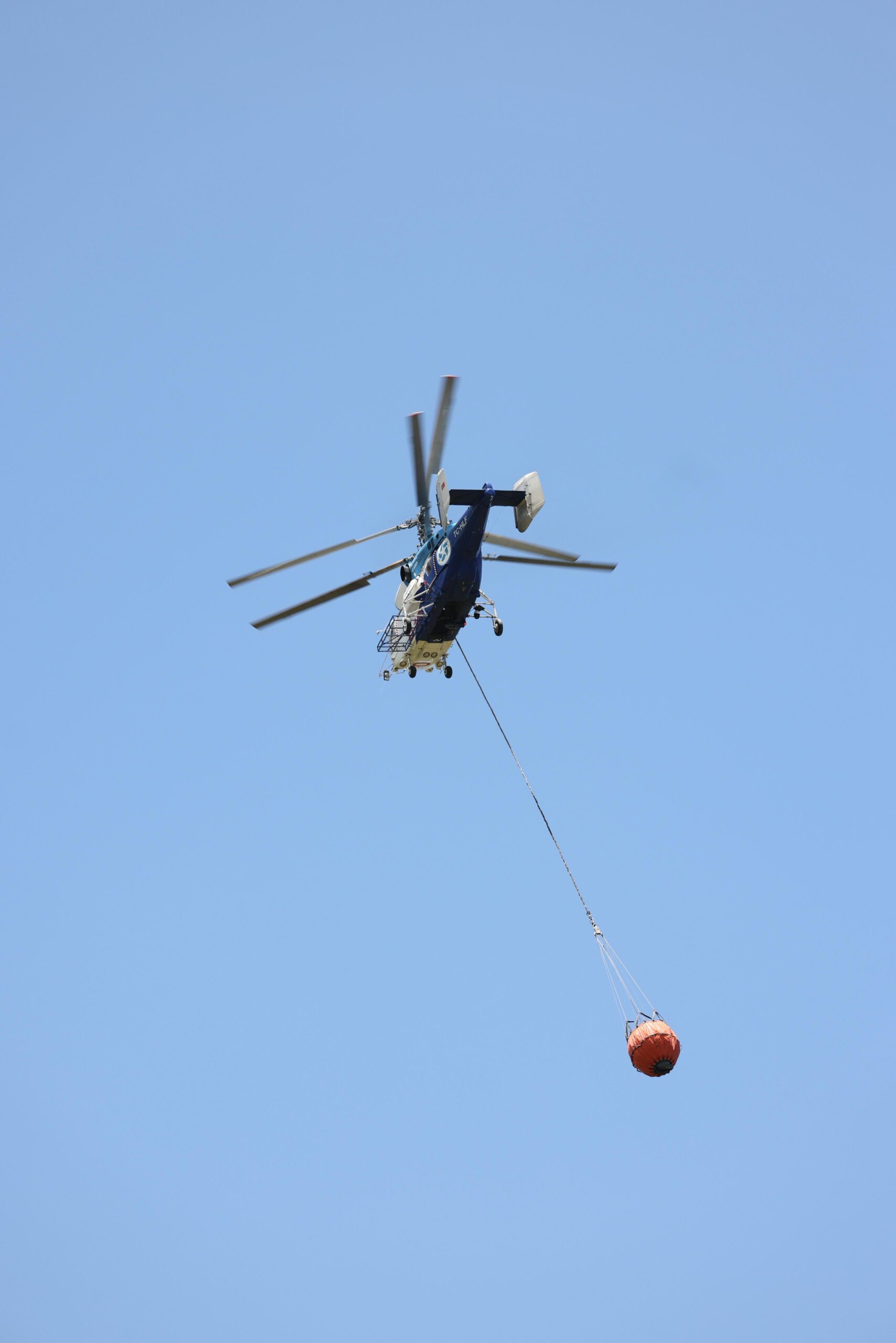 Ekiplerin bölgedeki çalışmaları, yangın söndürme helikopterinden görüntülendi.