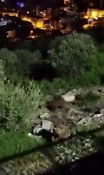 Sakarya’da mahalle yakınlarına inen bozayılar kamerada