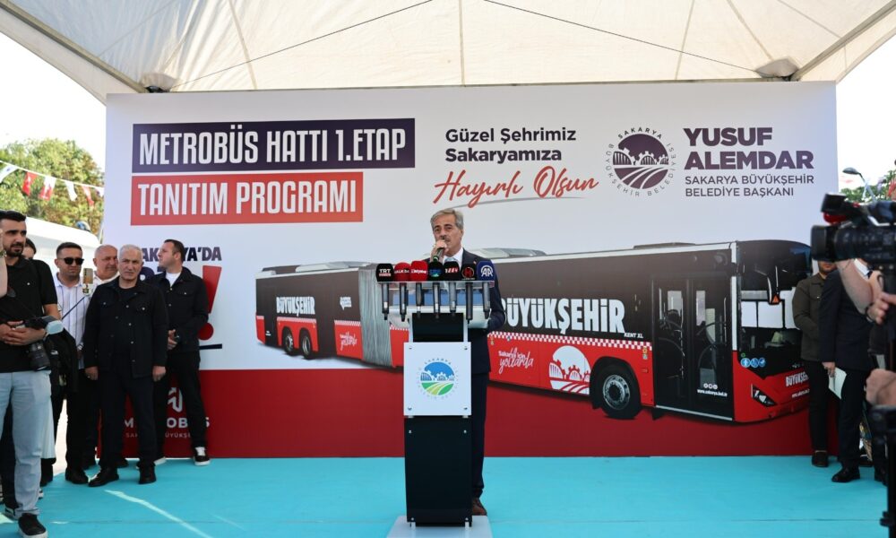 İstanbul’un ardından Sakarya’da da metrobüs ulaşım sistemi hizmete giriyor. Sakarya Büyükşehir Belediyesi’nin kendi öz kaynaklarıyla 19,5 kilometrelik hattın 16,5 kilometrelik bölümü tamamladı. Birinci etabının tanıtımının yapıldığı metrobüs hattında 11 araç ile seferler düzenlenecek. Düzenlenen törenle yola indirilen metrobüsün ilk seferinin yolcuları Sakarya Büyükşehir Belediye Başkanı Yusuf Alemdar ile şehir protokolü ve vatandaşlar oldu. Araç, Camili’den kornalar ve alkışlar eşliğinde yola çıktı. İlk sefer Gar Meydanı İstasyonu’nda son buldu ve projenin tanıtımı burada yapıldı.