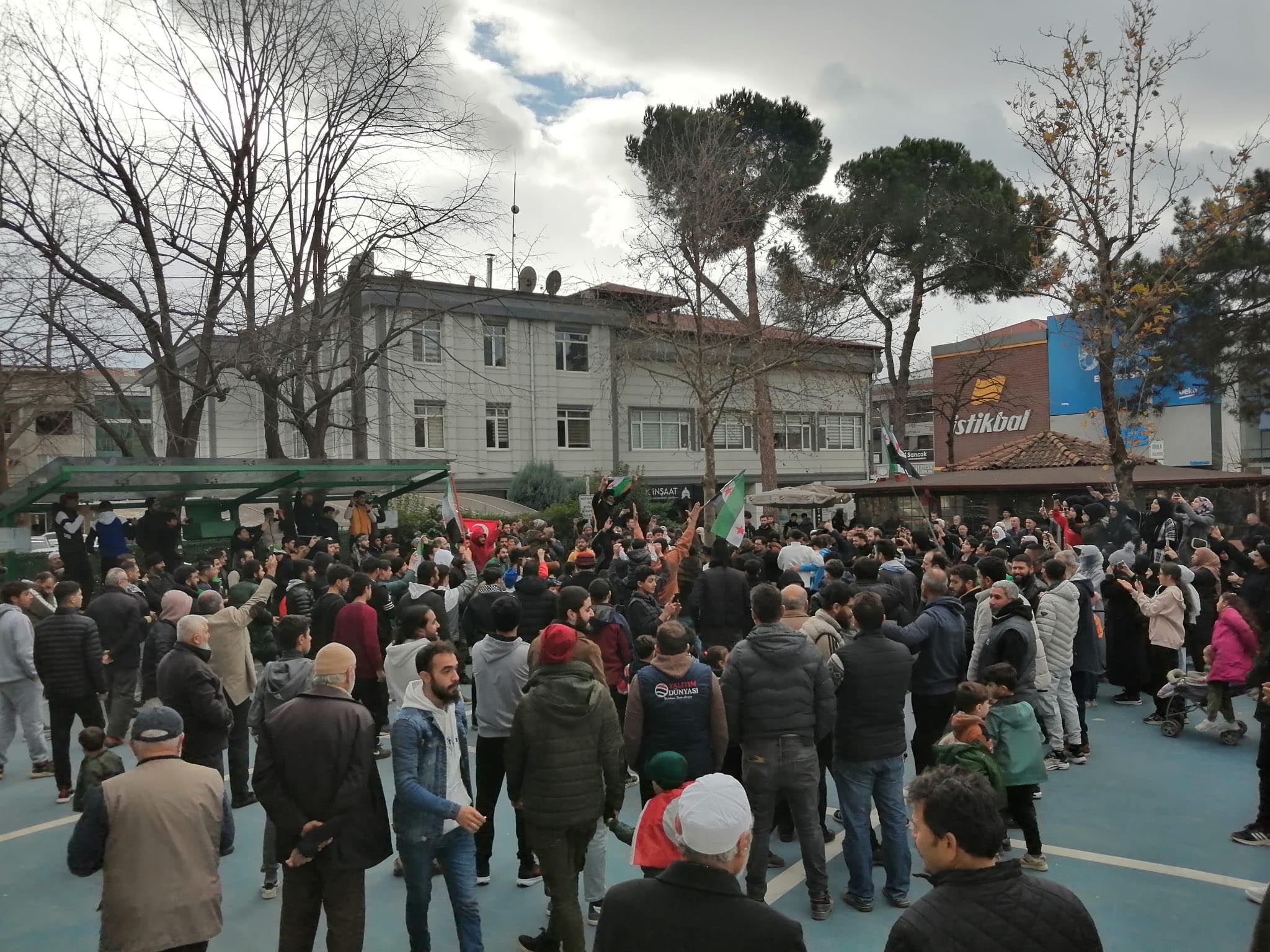 Akyazı ilçesinde yaşayan Suriyeliler, muhalif grupların başkent Şam’ın kontrolü ele geçirmesini sevinç gösterileriyle kutladı. Suriyeliler, Gazi Süleyman Paşa Camii avlusunda toplanarak Esad aleyhine sloganlar attı. Suriyeliler daha sonra olaysız şekilde dağıldı.