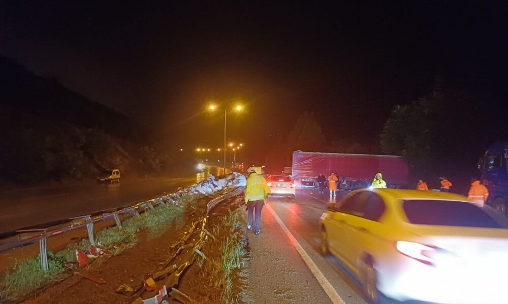 Samsun– Ankara kara yolunda TIR bariyerlere çarptı; ulaşım tek şeritten sağlandı