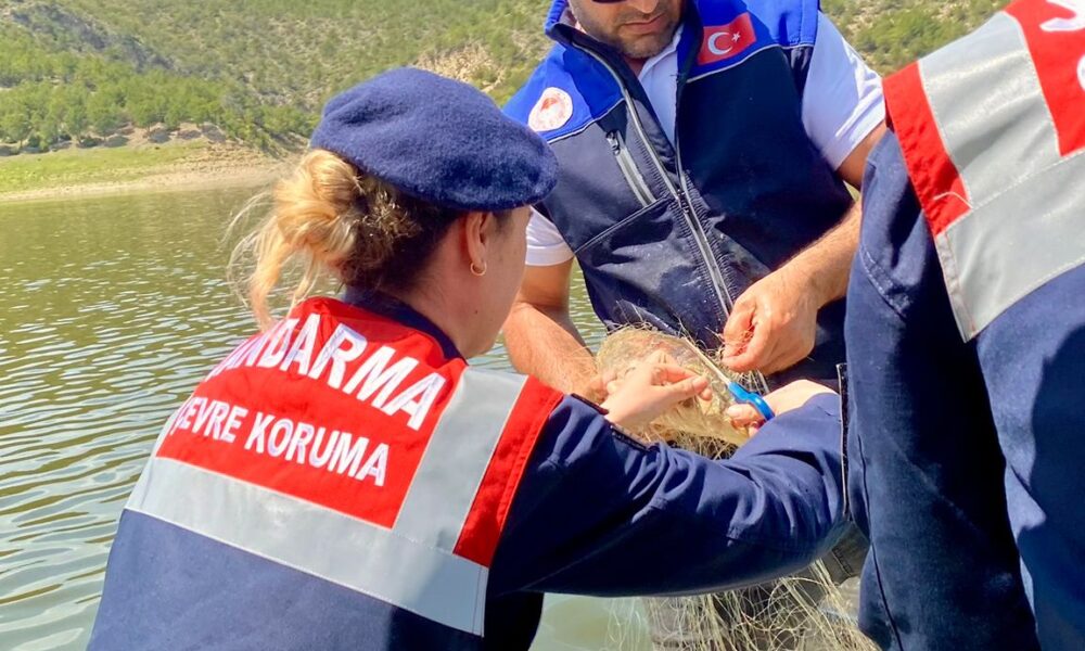 Samsun’da ağa takılan balıkları jandarma kurtardı