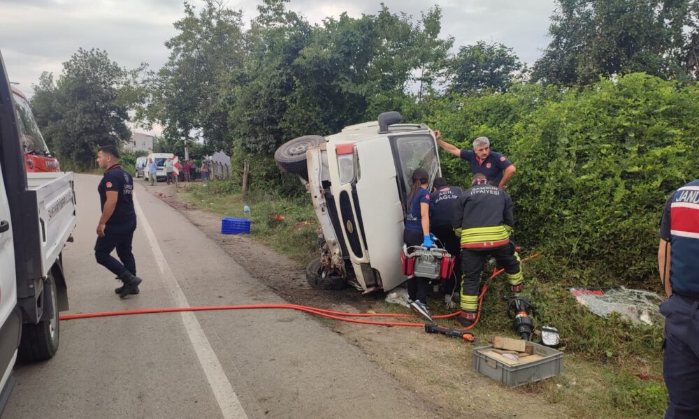 Samsun’da devrilen kamyonetin sürücüsü öldü; 2 yaralı