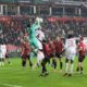 • UEFA Konferans Ligi son 16 play-off turu rövanş maçında Samsunspor, kendi evinde ağırladığı Kuzey Makedonya temsilcisi Shkendija’yı 4 – 0 mağlup ederek son 16’ya kaldı. Fotoğraf: SAMSUN, (DHA)