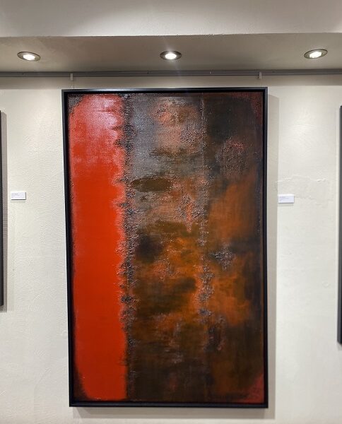 “Dönüşüm — Kırmızının Dili: İstanbulun sürekli değişiminin şiddetini, tuval üzerindeki kalın impasto ve kırmızı-siyah kontrastlarıyla somutlaştıran eserler. Siyahın hakim olduğu kaotik yüzeyler, çarpıcı ve yoğun renklerle çarpışır. ‘Close Impact’, ‘Fault Line’, ‘Alevler İçinde Şehir’ gibi çalışmalar bu eksenin ana yapıtlarıdır.