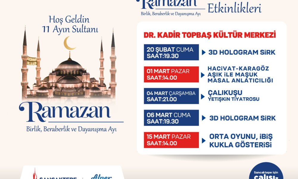 Ramazan ayının manevi atmosferi, Mustafa Öncel,Sarıgazi, Dr.Kadir Topbaş Kültür Merkezi ile Sancaktepe sahnesinde düzenlenecek etkinliklere ev sahipliği yapacak.