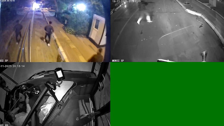 Halk otobüsünün kamerasına yansıyan görüntülerde ise araç önünde aniden çıkan bir grup silahlı gencin karşılıklı çatışmaları ve seken saçmanın araç camına isabet etmesiyle yolcular korkuya kapılıp çığlık atmaları yer aldı.