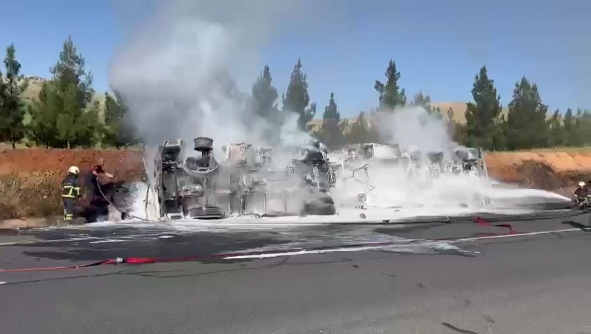 Şanlıurfa’da akaryakıt yüklü tanker devrildi; yangın çıktı